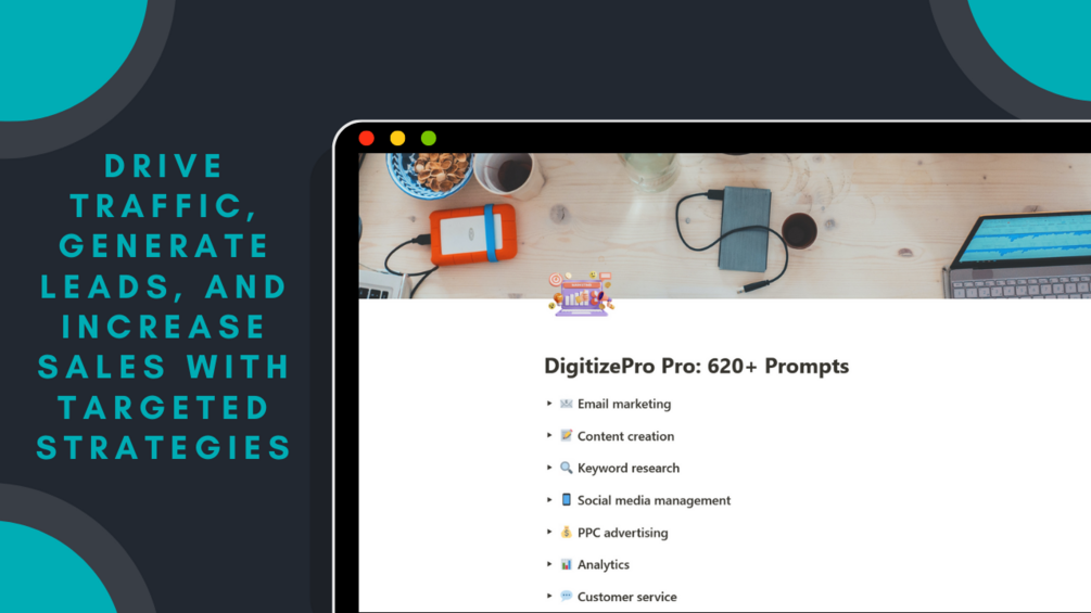 DigitizePro is not your average run-of-the-mill digital marketing resource. It's a comprehensive collection of meticulously crafted prompts designed to address the most pressing challenges faced by businesses today. Packed with actionable strategies and insights, this digital product will revolutionize the way you approach digital marketing.